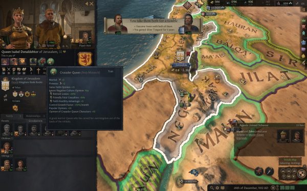 The chance to play as a woman so early in on the game - around the 1066 timeline - is pretty rare, and the circumstances of her victory led to her being hated by the surrounding leaders. Plus, you can't really get more of a win in Crusader Kings than taking Jerusalem by force - even unknowingly - so I declare myself the ultimate victor ahead of its release. Sorry, medieval history nerds.