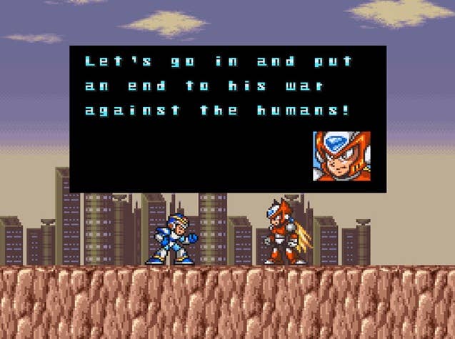 Though Mega Man X isn't a story-heavy game, it also evolved Mega Man's plot to make it a little more appealing for pre-teens and teens making the jump to the SNES in 1993. Gone are the original series' lovably silly robot masters and Dr Wily's weird schemes; in its place is a tale about robots aiming to wipe humans off the earth. There's even a sampling of moral conflict, i.e. X is the blueprint for the mechanically-advanced "Reploid" race. By extension, the Reploids that want to paint the streets with human blood are X's own kin – including the game's primary bad guy, Sigma.
