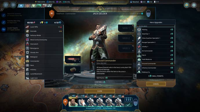Depending on your starting choices and which technologies you research, the units available to your army only grow as a game persists. I play games in the 4X genre on a regular basis, and compared to others, the number of units here almost feels like too much. By my count, there's 223 units, compared to something like 76 for Civilization 6; there's some overlap in unit type, but they all have distinct capabilities. And that's before you get to equippable mods, which also change each unit and allows for direct micromanaging. There are also Heroes, units unique to each race. These characters have more power and skills than normal units, can utilize special hero-only equipment to improve their abilities, and have access to hero abilities. For instance, some Dvar heroes can walk right through battlefield obstacles, while an Amazon hero could buff the damage of all units within a certain range. Some even get special vehicle and mounts. You have to protect your heroes to a certain degree, as depending on your game settings they're at risk; by default, your lead heroes will return after a brief sabbatical, while others are gone for good.
